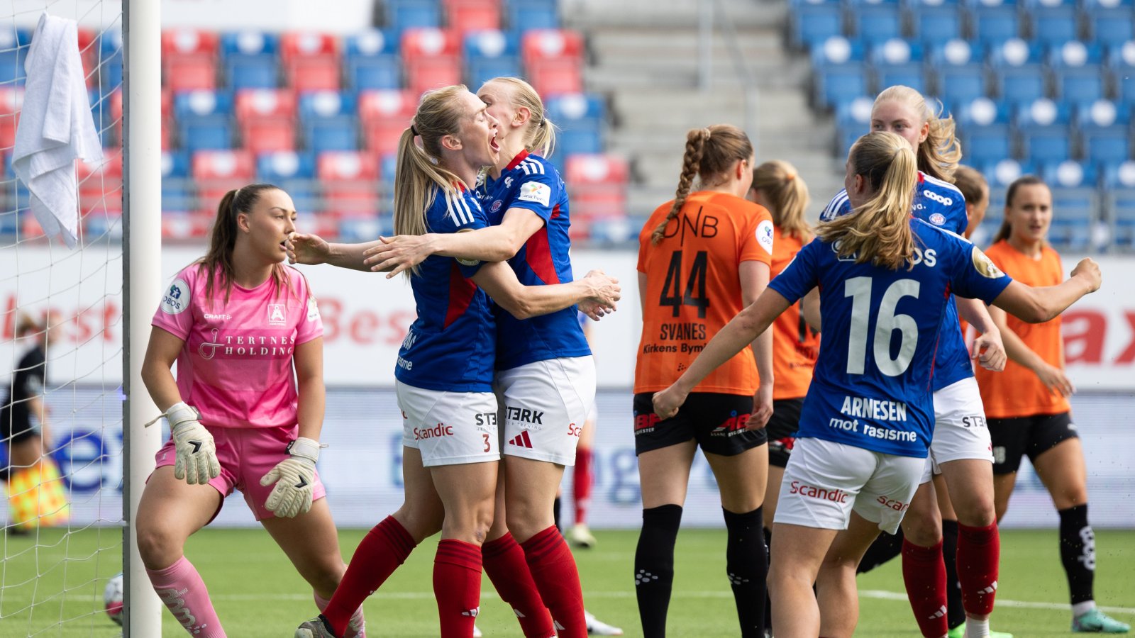 Deretter får Åsane en redusering, før Elise Thorsnes scorer vårt fjerde i det klokka passerer 90.