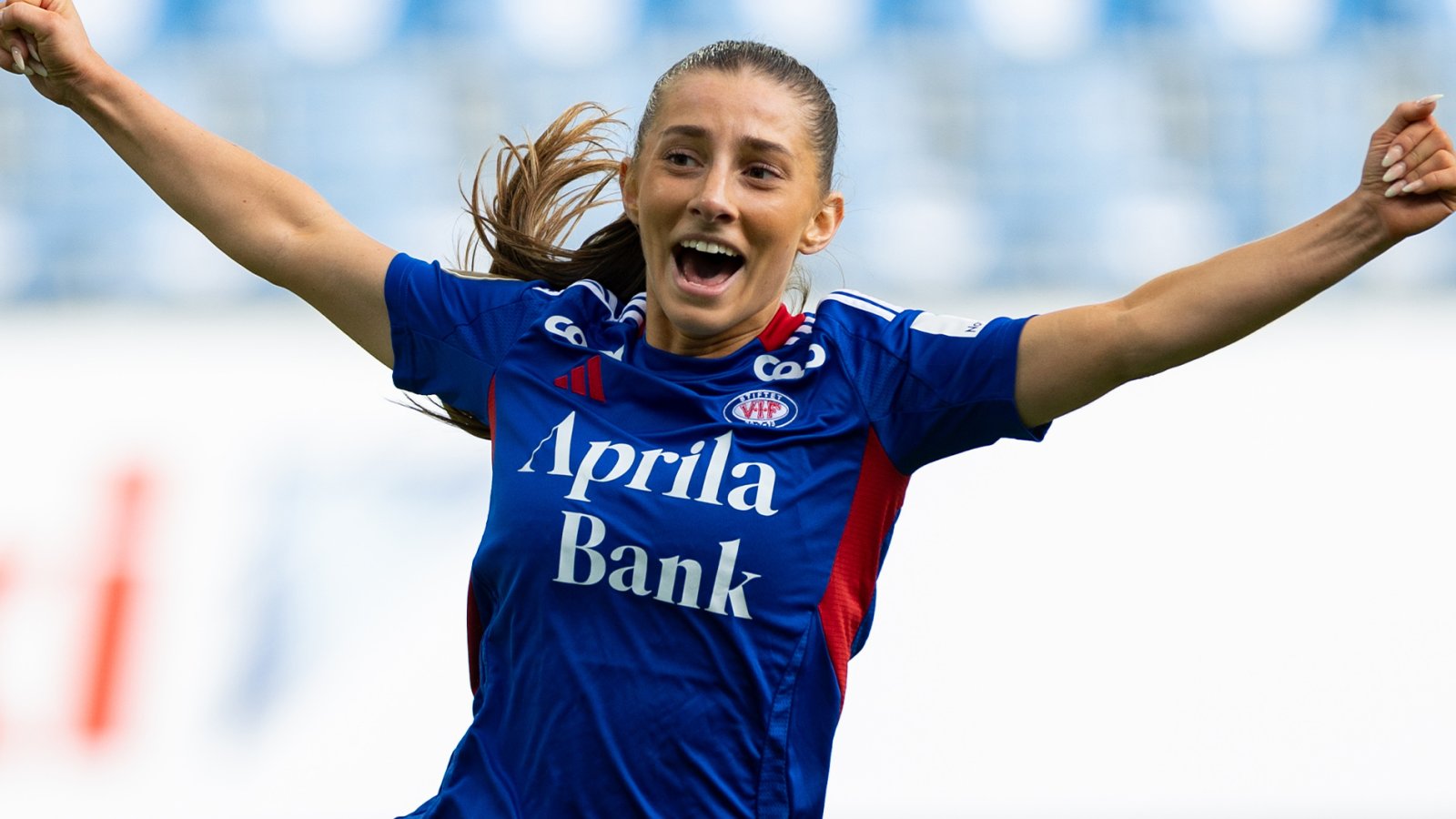 To minutter senere scorer 17 år gamle Ronja Foss Arnesen sitt første A-lags mål! Først er det Sævik som har fint driv ute på høyresiden, hun drar med seg ballen mot linja og spiller ut til Arnesen som plasserer ballen lekker i lengste!