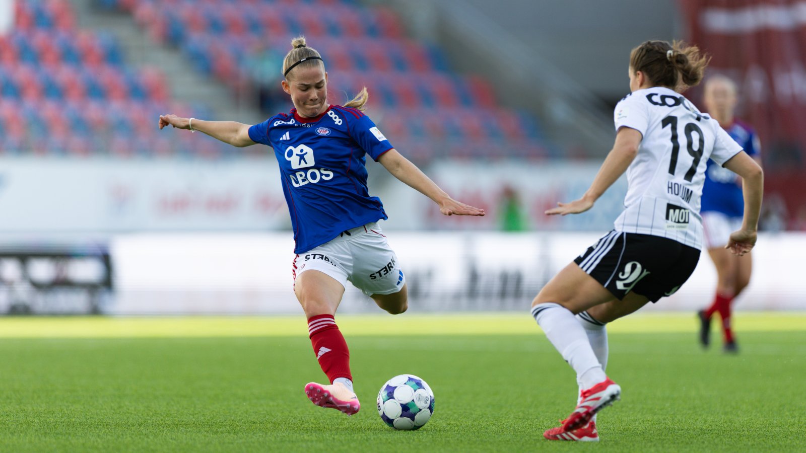Rosenborg tok ledelsen etter fem minutter, men vi svarte umiddelbart med tungt trykk og kraft på dødballene. Et perfekt slått innlegg endte med at Sara Hørte fant panna til Michaela Kovacs, som styrte inn 1–1.