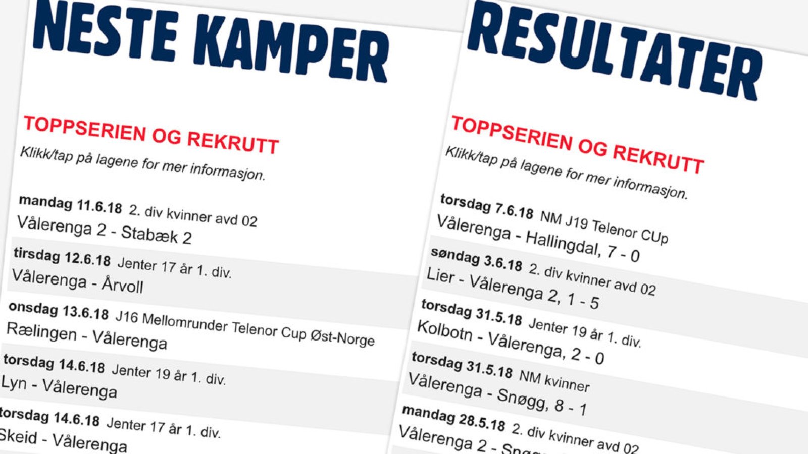 Listene finner du under menyvalget «Tabeller og kamper». På mobil har vi også lagt linkene i en blå boks under hovedoppslaget. Det er litt forsinkelse i systemet og dataene vi får fra NFF, så listene er ikke oppdaterte i det dommeren blåser i fløyta, men nesten 🙂