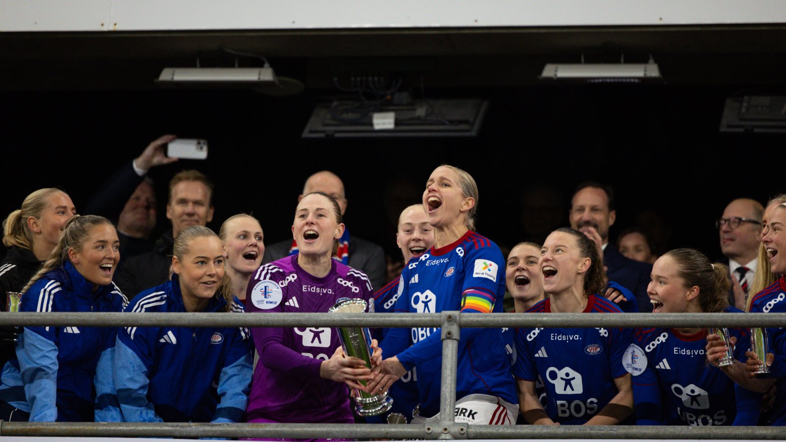På overtid kom øyeblikket alle ventet på: Elise Thorsnes kom på banen for aller siste gang i karrieren, med kapteinsbindet rundt armen. Tidenes toppscorer i norsk kvinnefotball fikk sine siste minutter i blå drakt, og kunne løfte troféet sammen med resten av jentene.